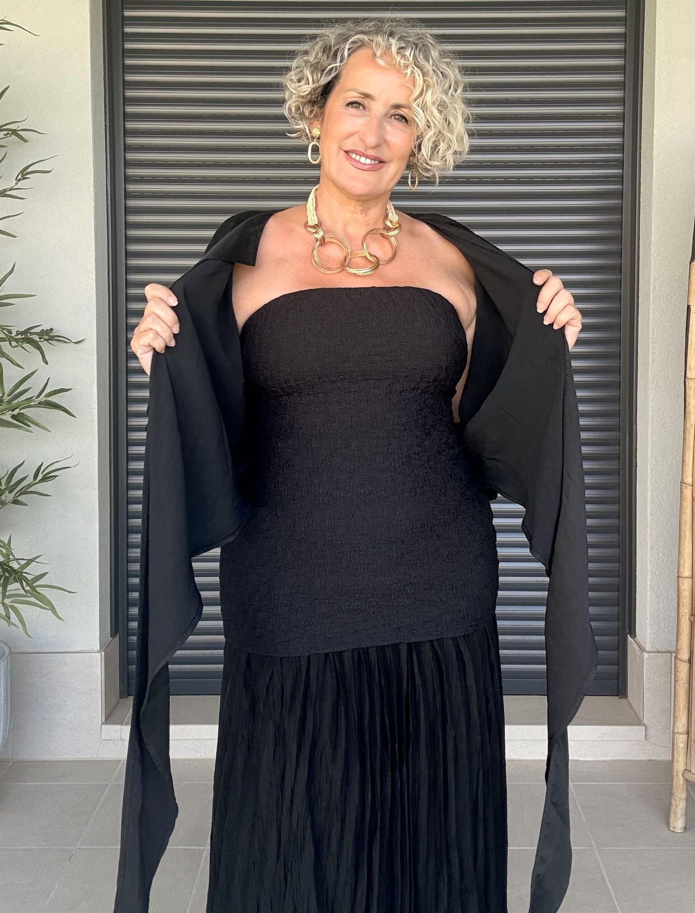 El color negro añade sobriedad, fuerza y atemporalidad, convirtiéndola en un básico indispensable que combina con todo tu armario. Perfecta para elevar looks casuales o para completar conjuntos más especiales con estilo y personalidad. Talla Única desde 36 a 44.