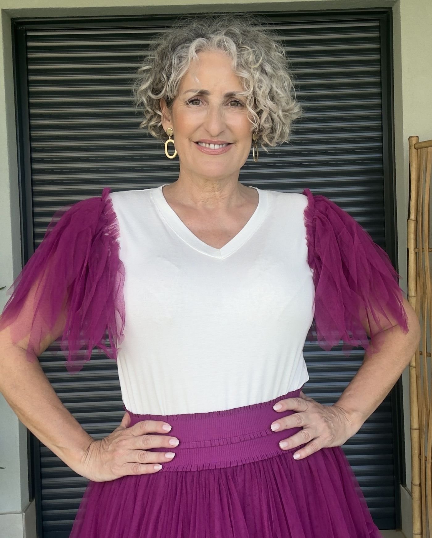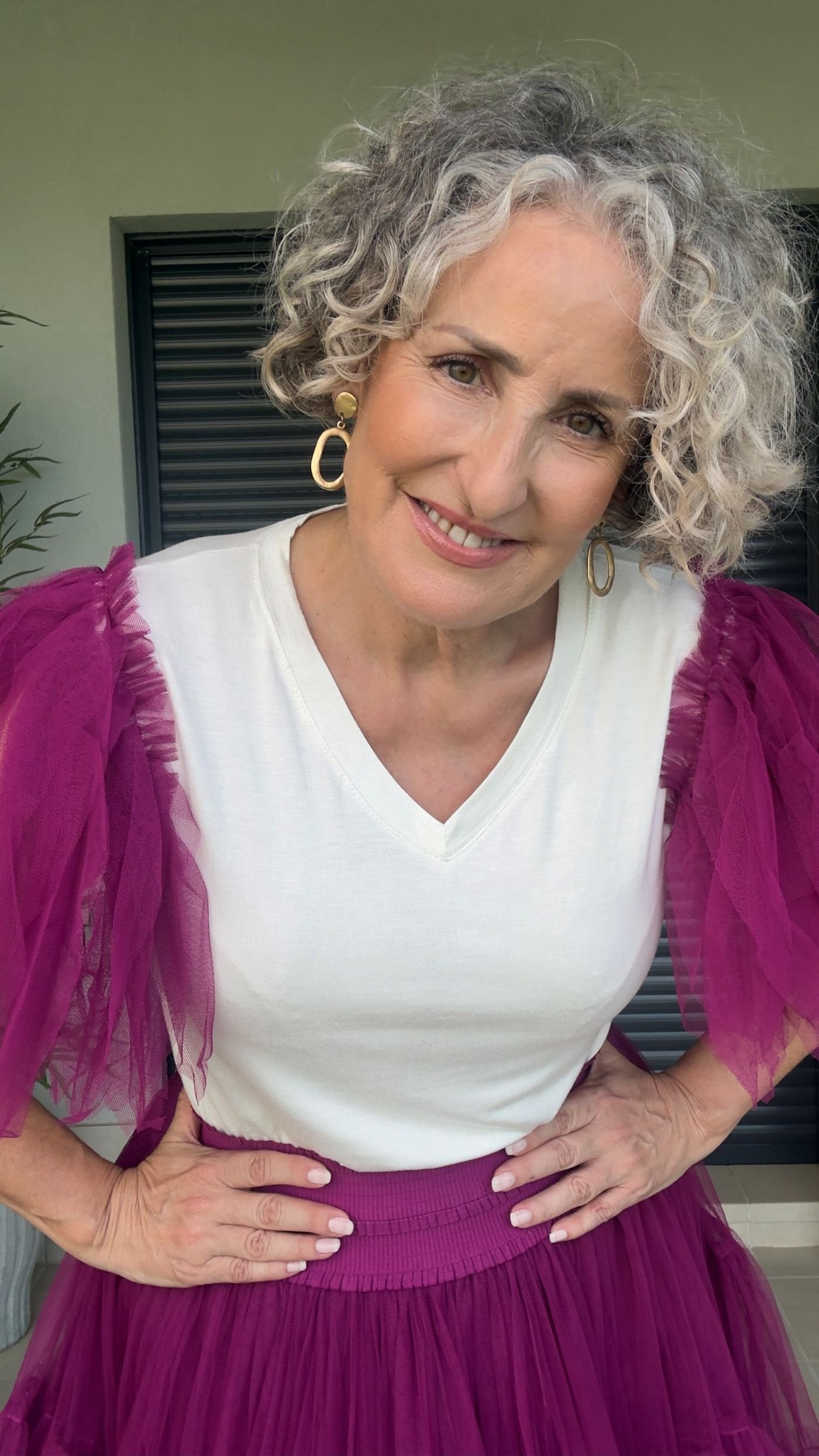 Nuestra Camiseta Básica Tul Buganvilla es el básico con carácter que transforma cualquier look. De color blanco y con escote de pico favorecedor, incorpora mangas de tul en tono buganvilla que aportan frescura, contraste y un toque femenino lleno de estilo.